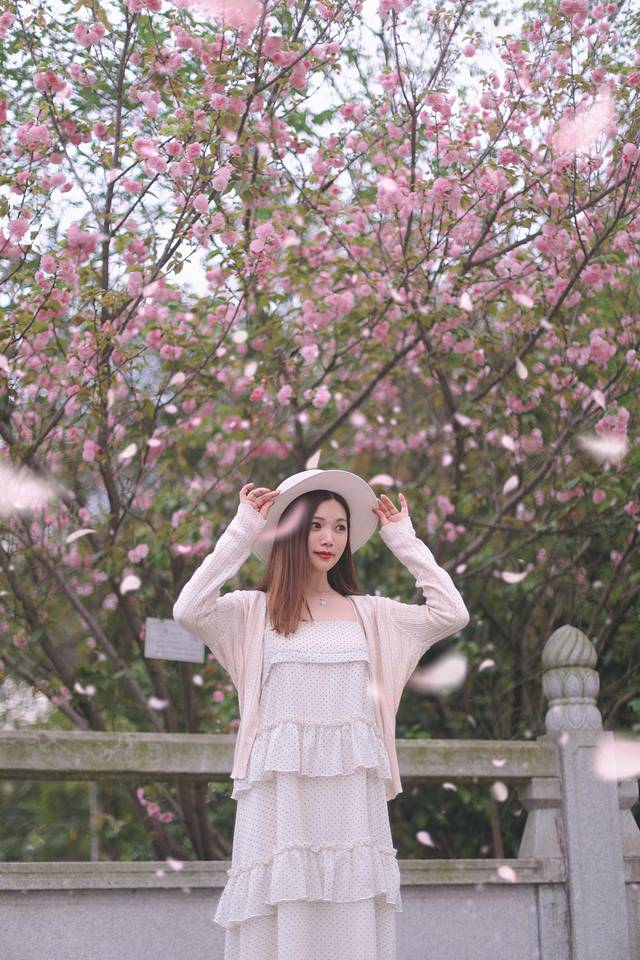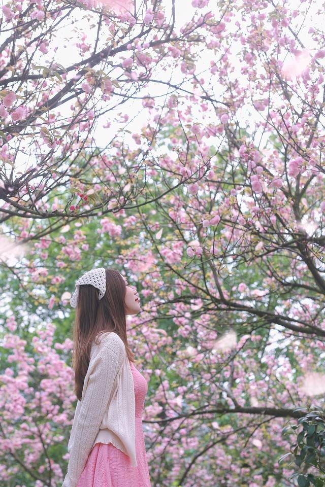 走在其中,淡粉色的樱花连成片,偶然有花瓣落下,如雪花飘落,更显得浪漫而动人。