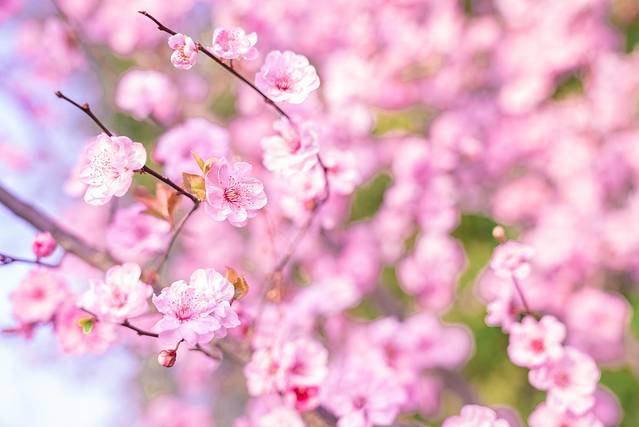 盐城赏花必然要去大洋湾,赏一片樱色。大洋湾是樱花的天堂,红霞樱、椿寒樱、杨贵妃樱、江户彼岸等多个樱花品种盛开。