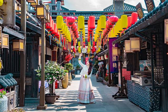 傍晚时分,逛下唐渎里,巧的遇见古风歌舞表演,舞者身着华丽的服饰,随着音乐的节奏翩翩起舞,让夜色多了一重浪漫。