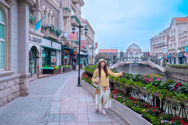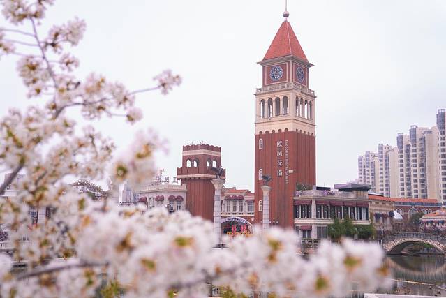 隔着一条街道便是欧风花街。这里充满欧洲风情,仿佛置身于异国他乡。街道两旁的建筑都采用了欧洲古典风格的设计,红色的砖墙、尖顶的屋顶、精美的窗花,每一处都流露出优雅与浪漫。