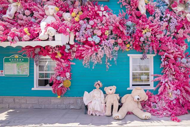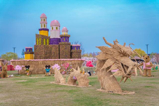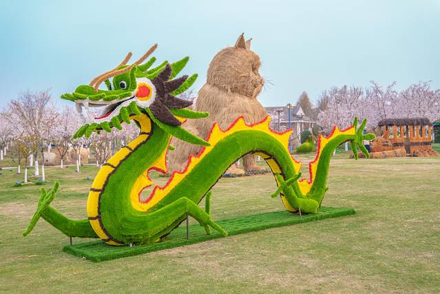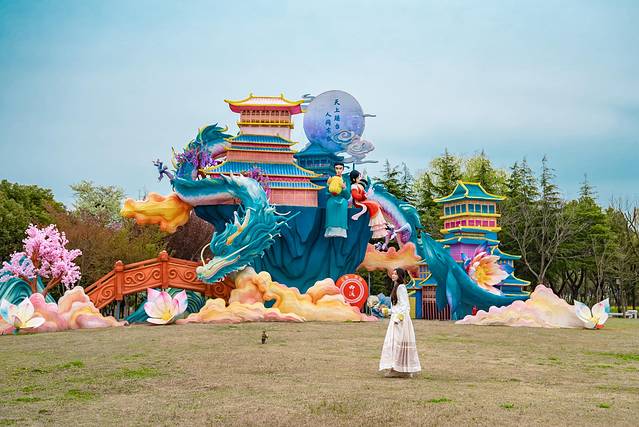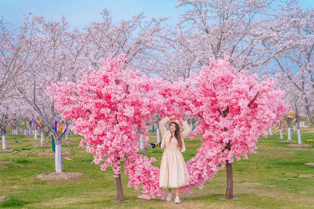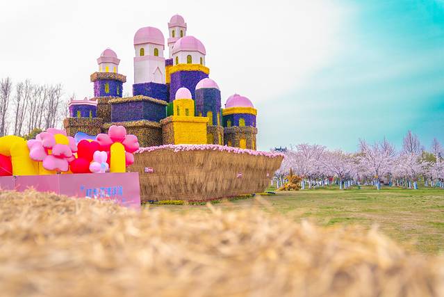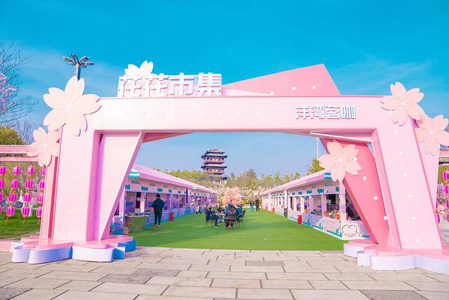 草坪上有很多巨型的动漫卡通装置,与樱花交相辉映,构成了一幅美轮美奂的画面,最适合打卡拍摄,也是小朋友的最爱!还有众人期待的夜游樱花海,整片樱花林都披上霓裳羽衣,在梦幻的樱花海和百米隧道被星光迷住。
