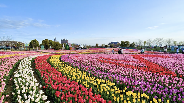 这里的主角是郁金香,300多个品种、3000万株郁金香竞相开放,说是彩虹海一点儿不夸张。