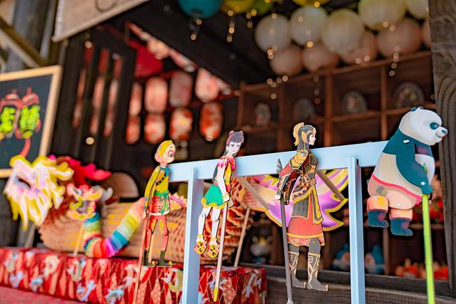 沿着唐风巷子里漫步,很多灯笼、皮影、香囊的商铺特别有古代街市的感觉。
