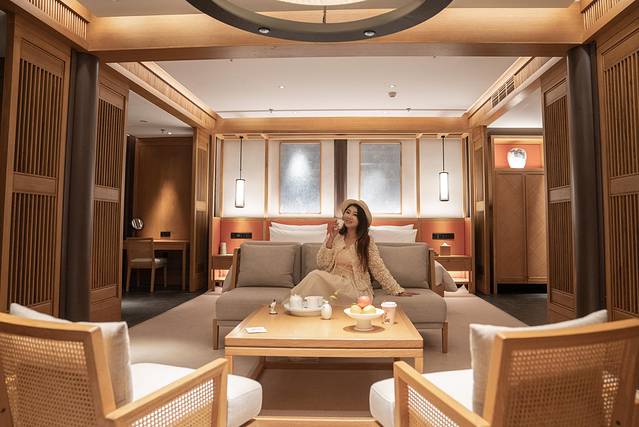 私汤套房是古典雅致的中式庭院,房间木质美学设计为主,庭院里还有一处私汤,泡温泉卸掉一身疲乏,感受慢节奏的生活。