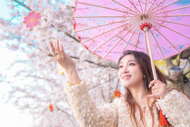 我漫步在樱花小镇中,只见樱花如云似雪,层层叠叠,将整个天空都染成了粉色。微风吹过,花瓣随风飘落,仿佛置身于一个粉色的梦境。