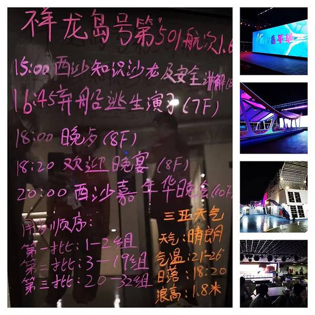 当天船上有晚会没去参加,在房间细细回味这次旅行。想起一句老子的话:“祸兮福之所倚,福兮祸之所伏。孰知其极?”出行两度受挫是坏事,但蕴藏了小船换大船,旧船变新船,以及适逢西沙海战五十周年纪念这样的好事,这就是“辩证法”。