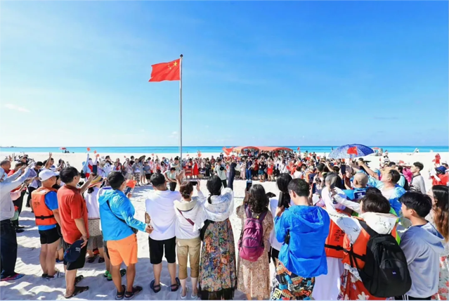 全富岛就是雪白的沙子堆出来的。它比一般的银滩更白、更净,更加独特。此视频可以证明,用玻璃海形容它一定不为过吧。上午十点多,在岛举行一个升国旗仪式。此时此地,此景此情,远望冉冉升起的五星红旗,爱国之情油然而生。不由得右拳上举,宣誓着中华人民共和国领土神圣不可侵犯,又接受了一次爱国主义教育。