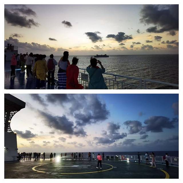 下午五点左右启航,离开了凤凰岛码头,告别了三亚,正式开启了西沙行。航速不高,推算了一下大约为14节左右。能感到船前进和晃动,但不颠簸,无不适感。