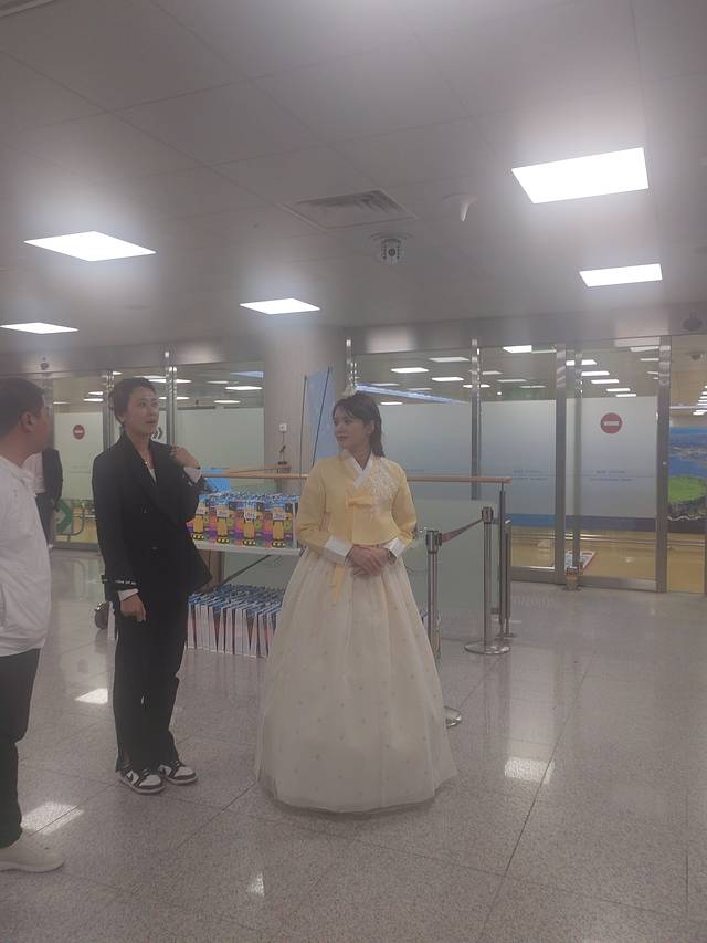 出口,韩国诺娜民族盛装迎接,不知道接哪个旅行团。