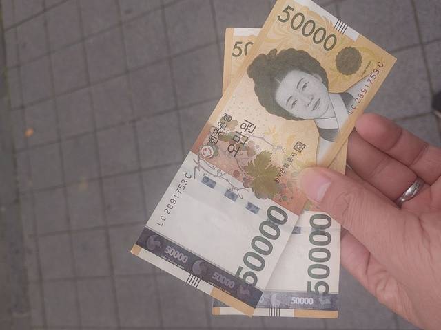 来的匆忙,也是因为习惯,没有带现金。济州岛基本上不能使用支付宝,更不要说微信了。不过这怎么可能难倒我呢?就在酒店门口找一个旅行团,找到带队的导游,跟他换了一点韩币。550元兑换10万。团里一个江西老太问我,说到机场换是620元兑10万,亏了。看来,这个导游良心大大的好!跟银行一个价。