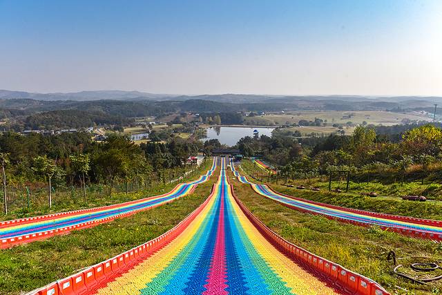 火爆的彩虹滑道绝对不能错过!从山顶飞驰而下,那种速度与激情的结合,简直让人欲罢不能!每一次滑行,都是一次对自我的挑战。