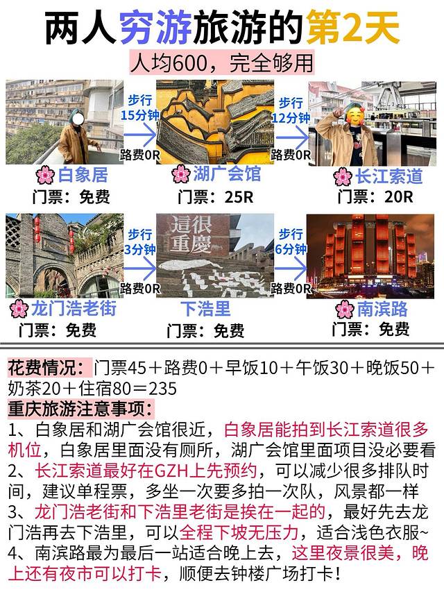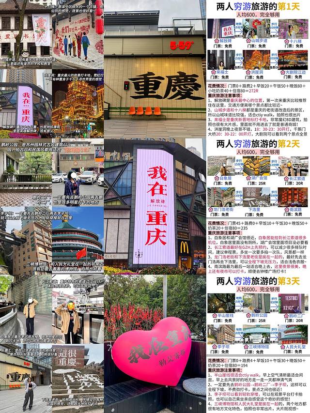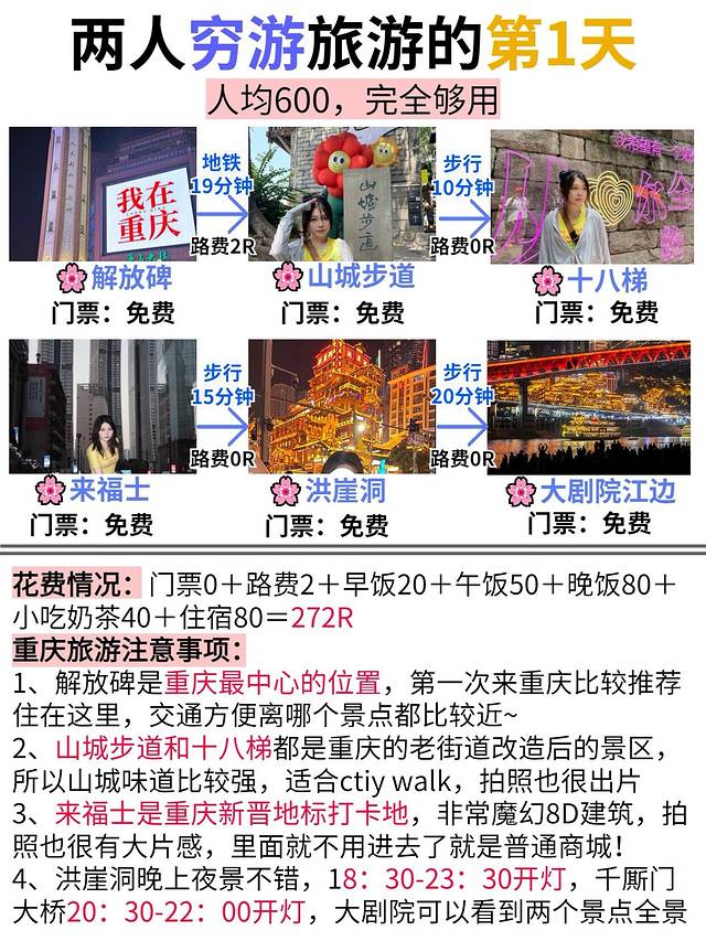 本人觉得自己的旅游攻略已经是next level!|||感觉我做的旅游攻略太🐮了!🙋和男朋友去重庆玩了三天,也没有特别穷游,居然才花费了600💴多……