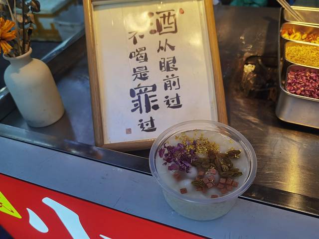 我以前对酒酿几乎没什么概念,是这次来华中地区,才知道酒酿做的饮品冰冰凉凉还甜丝丝的好好喝!这个酒酿小圆子的小圆子也很好吃,一整个大美味。