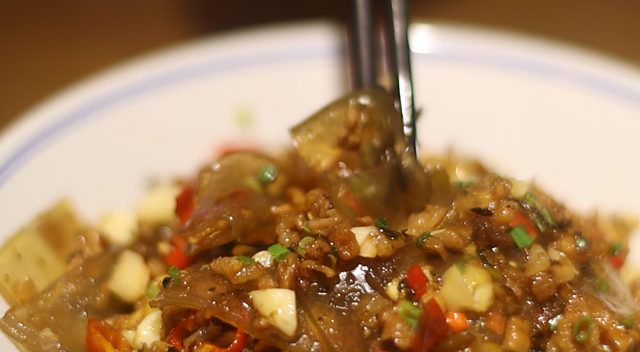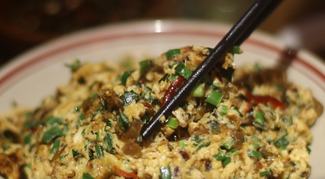 还点了一个香辣菜炒鸡蛋,没有炒粉皮好吃,但也很不错,不会很辣,鸡蛋很香。