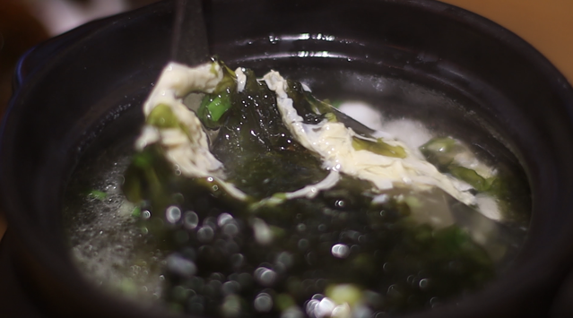 套餐还包括一个紫菜蛋汤,挺鲜亮的,但是点了明油,稍微有点油嘴。