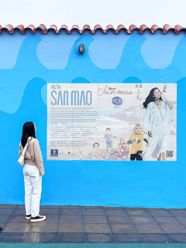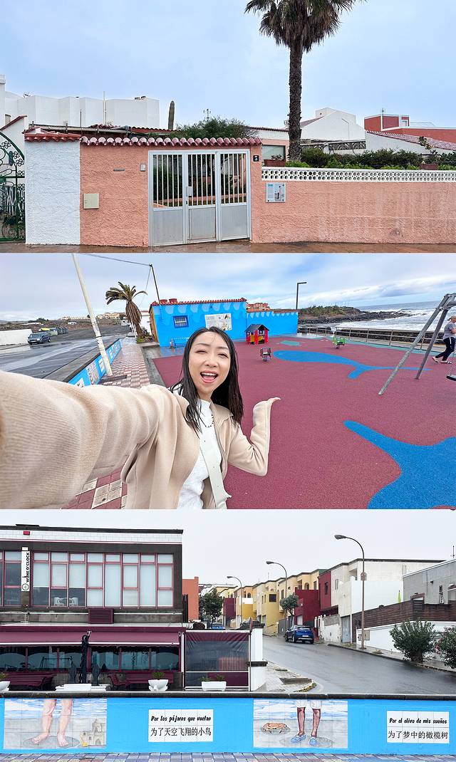 这个街区很推荐citywalk,周围都是一些排列整齐的马卡龙色矮房子(上图),拍照也很出片。“三毛角落”也临海,因为她本人很喜欢小朋友,却遗憾没有和荷西拥有一个自己的孩子,于是后人便在这里为她建了一个三毛主题的儿童乐园,周围是一些她的歌曲填词和文学摘抄语录。