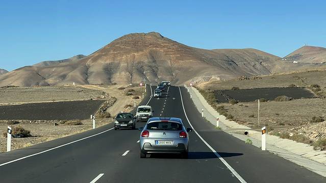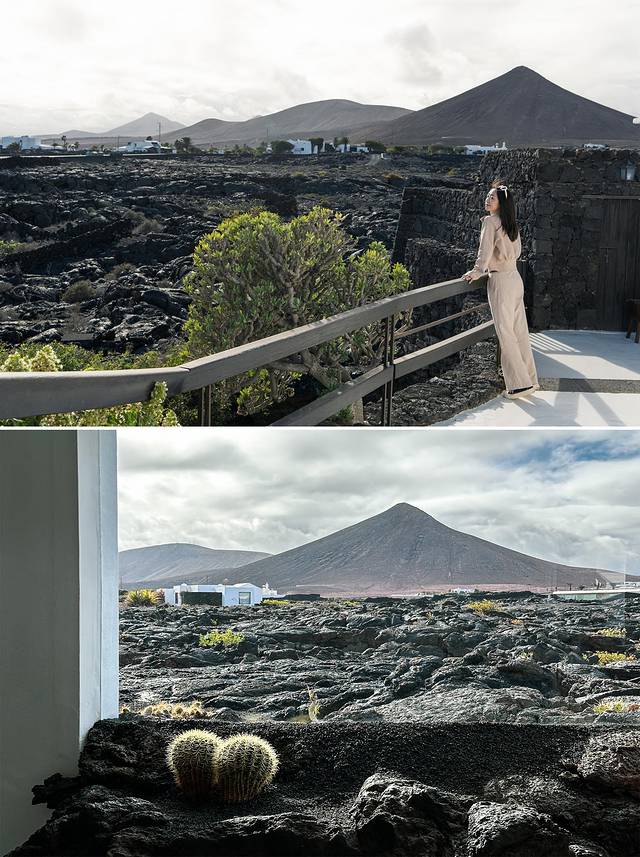 在兰岛公路上开着车,眼前、身边也都是黑乎乎的火山和熔浆,整个世界充满了一种末日后的颓废风,一切都那么荒凉,似乎看不到一线生机。因为兰萨罗特岛虽然是在1900万年前形成的,但现在岛屿的面貌主要在1730年定下基调,岛上100多个火山口持续喷发长达6年之久,淹没了很多村庄和房屋,整个岛上都是黑色的火山灰和熔浆。以前虽然也看过不少火山,但真的没有来过整个岛密布着100多座火山的目的地。