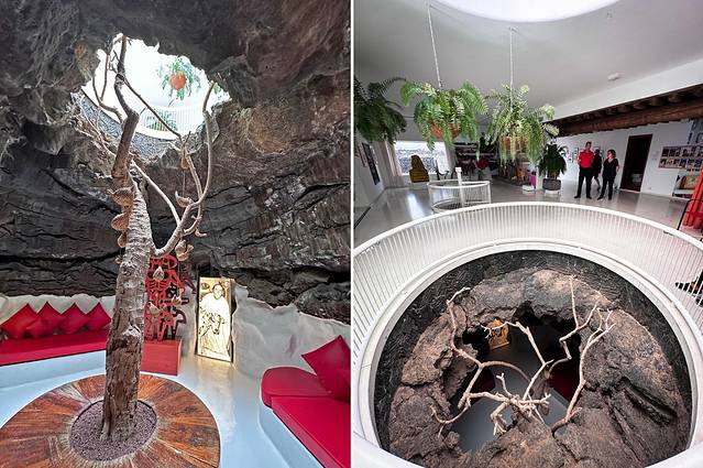 Manrique真的是一个艺术鬼才,谁会想到在火山熔浆气泡上建房子呢?崇尚自然的他认为,火山熔浆气泡和里面的树木都是非常天然的姿态,于是便围绕着被熔浆浇灌、虽死却依然挺拔的树建起了两层楼的会客厅,用丰富鲜艳的色彩点缀在黑白之间。他的设计就像是无视了时空变迁,现在看来依然非常前卫、有穿透力。