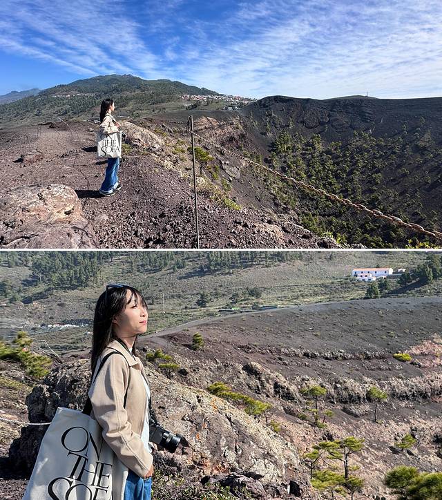 和想象中的火山样貌不同(也许是兰岛的印象太深刻),因为La Palma的气温和湿度适宜,火山口早已长满了松树和各种生态圈动植物,一片生机盎然。光凭眼前的景象,真的很难把她和破坏力极强的火山联系在一起。