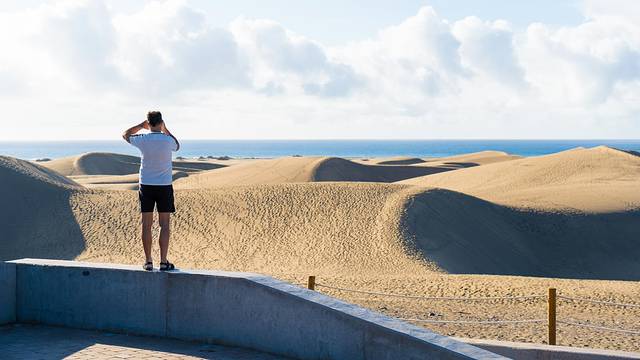 大家看过NetFlix的《猎魔人》吗?原来在我们酒店旁的著名景点Dunas de Maspalomas马斯帕洛马斯沙丘就是这部影视剧的取景地之一。沙丘位于岛的最南端,紧邻大西洋,越过金色的沙丘便是湛蓝无边的海水,如此宏大又神奇的风景若不是亲眼所见,一定很难想象。