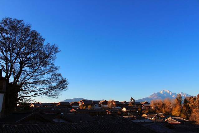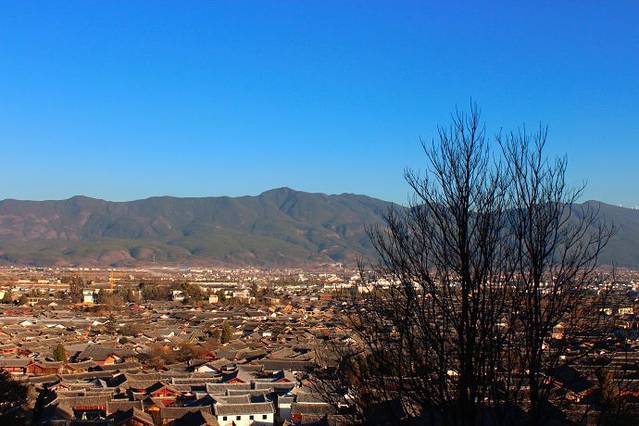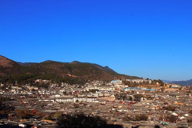 选择了一家可以观看丽江古城全景的客栈,品上一壶茶,听着台上的歌手演奏,俯瞰丽江,无限风光。层层叠叠的青屋顶,是丽江最典型的景观,每一幢建筑,都是岁月的痕迹,古柏古城古韵悠然。