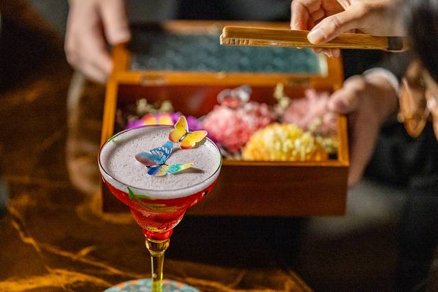 调酒师为我们耐心调制着每一款充满山城特色的鸡尾酒,大开眼界,在小小一杯酒里看到沙坪坝磁器口麻花、巫山小山峡壮丽风景、九龙坡黄角坪艺术街、陵榨菜……建筑、美食、风景与重庆故事结合使得特调更加鲜活创意,奇特原料的碰撞,带来奇妙的味蕾感受。