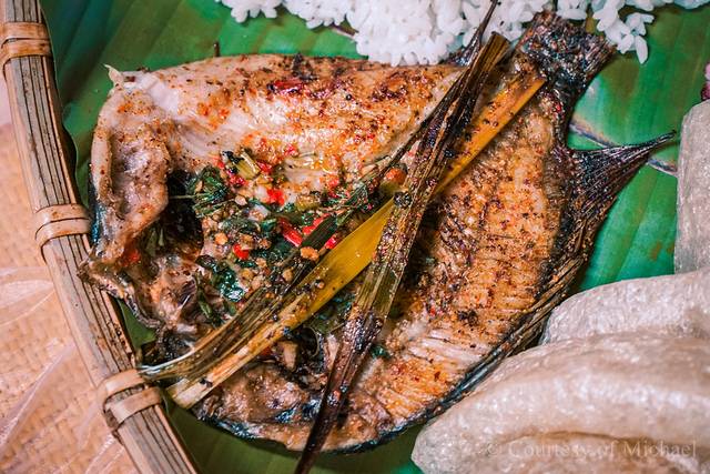 (3)香茅草烤鱼:一道传统的傣族风味菜肴,主要原料是罗非鱼和香茅草等调料,味道独特,肉汁香醇,鱼肉鲜美。