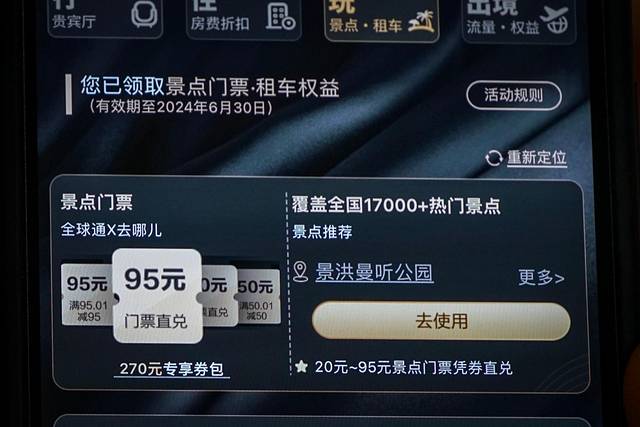 经过3个多小时的飞行,终于抵达西双版纳。由于西双版纳的景点比较分散,我决定租车游玩比较方便,不过在人生地不熟的地方想租一辆靠谱的车并没有那么容易,租车公司需要网点多、服务好,还好中国移动全球通就有租车专享包权益,迫不及待领取了租车券包,不仅有租车抵扣券,取车也真的很方便,就在机场附近,这对于喜爱自驾游的我来说简直高效便捷。每次出行都能享有这样的权益,自驾旅行如此随心自在。