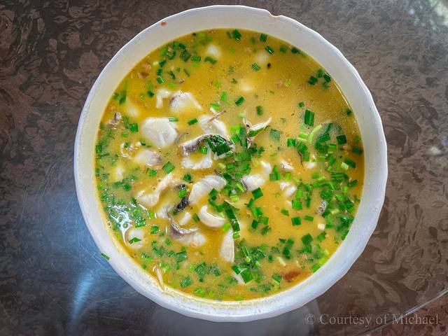 (7)西番莲煮鱼片:吃起来味道很惊艳,汤底带有百香果的果香,金黄色的汤底,鱼片鲜美,汤底酸甜,很是开胃。