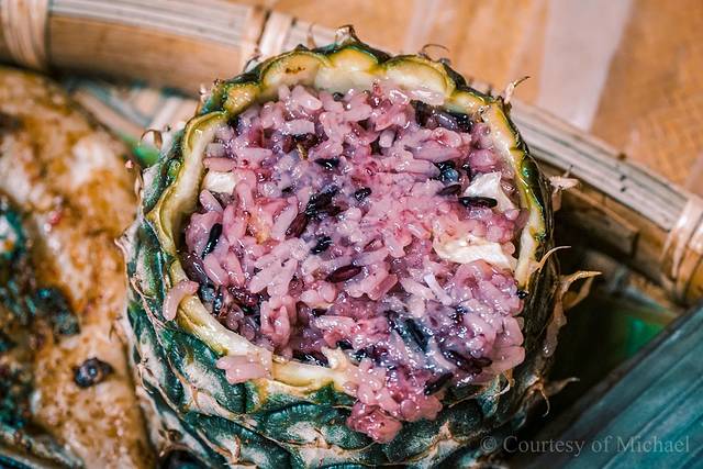 (4)菠萝紫米饭:具有傣家特色的糯米制食品,具有多重口味,酸甜适宜,香而不腻,米饭带有菠萝味,清甜可口,回味无穷。