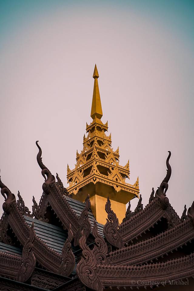 有着西双版纳极具标志性的建筑——景洪大金塔,是一座泰式风格大佛塔。就位于澜沧江畔,棕红色的塔身、镀金的塔顶都非常有气势,给人庄重华丽之感。