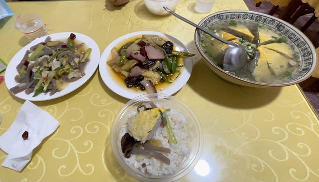 本来想先吃个热米皮再去吃炒菜 结果热米皮店关门了(小县城的节奏就是这么的任性😂) 直接去车站附近的川娃子点了佛坪三香、魔芋泡菜和面皮炒腊肉 很好吃老板很热情 出来发现想买了带回去的炕炕馍也卖完了😂