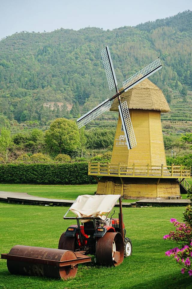 云岚牧场位于泰顺第二高峰~柳峰尖山腰的柳峰乡高场村。这座海拔800米、占地1600多亩的牧场,是浙江省一鸣食品的第一座自有牧场。蓝天、绿草坪、大风车、奶牛…眼前的这些景色,完美符合了我想象中的牧场画面。