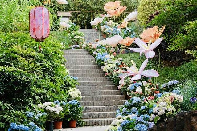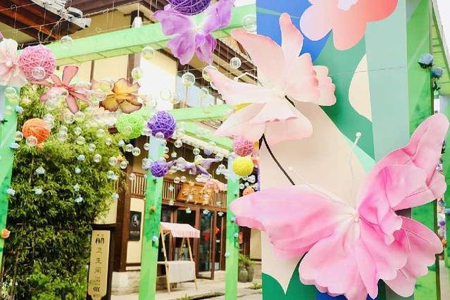 走进诗经里,百花盛展,仿佛置身于一个五彩斑斓的花海之中。从诗经里山门入口开始,花境呈自然式组团;各种花艺盆摆遍布诗经里,将诗经中的经典元素与现代设计手法相结合,打造出一个既古典又时尚的艺术空间;近5米高的瀑布型花艺主题氛围装饰独具匠心,将传统文化与现代元素巧妙结合,既有古典的雅致,又不失现代的时尚。几十种花艺盆摆遍布诗经里,花路、花海、花境层出不穷,是市民游客拍照打卡的好去处。