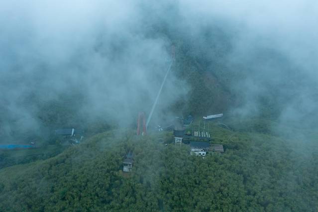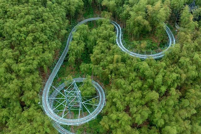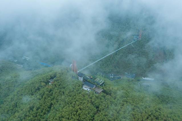 山顶的大竹海玻璃桥,全长468米,离地面高度107米,站在竹海玻璃天桥上。在这里你可以挑战自己,同时还能鸟瞰整个安吉的乡村风景无疑。