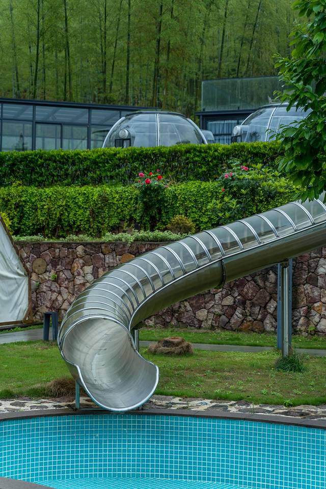庭院内有小朋友喜欢的游玩滑梯,大大的山景泳池视野极佳,仿佛在云端戏水,分分钟拍出杂志照。