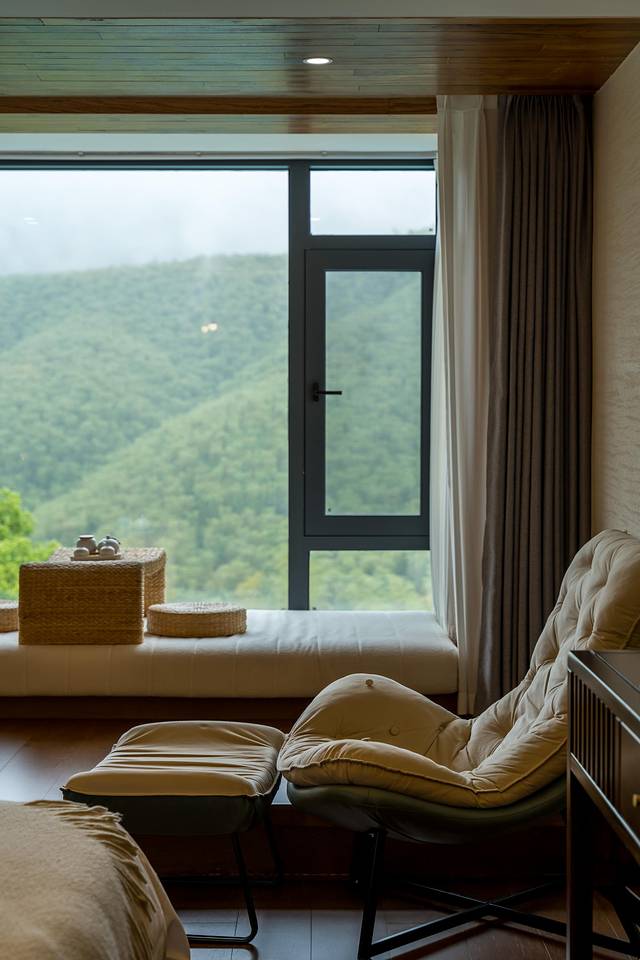 民宿总共12间房间,房间方面设计也特别好,民宿房间方面以原木设计为主,躺在床上就能看见壮阔的竹海,在酷暑季节可以每天面对着这样的山景,简直就是一种享受。也能让假期度过的更加愉快,适合家庭出游,亲子出游。