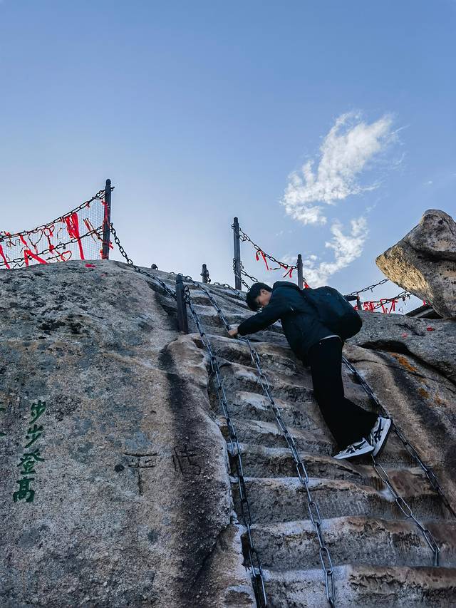 华山,自古以来就有“奇险天下第一山”的美誉,它的险峻、神秘一直吸引着我。这次,我决定挑战自己,攀登这座令人望而生畏的山峰。当然,也浅浅挑战一下可以了,不敢太造次~所以选择的是索道上山,北上西下。