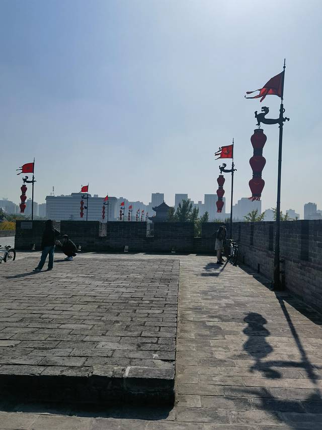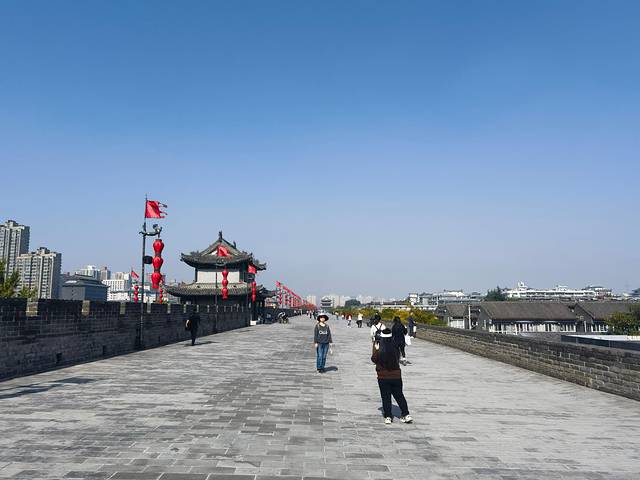 踏上城墙,仿佛穿越了时空,回到了那个金戈铁马的年代。城墙宽阔而坚实,足以容纳几匹马并行。我沿着城墙漫步,可以清晰地看到远处的城市景色,感受到这座城市的古老与现代的交融。
