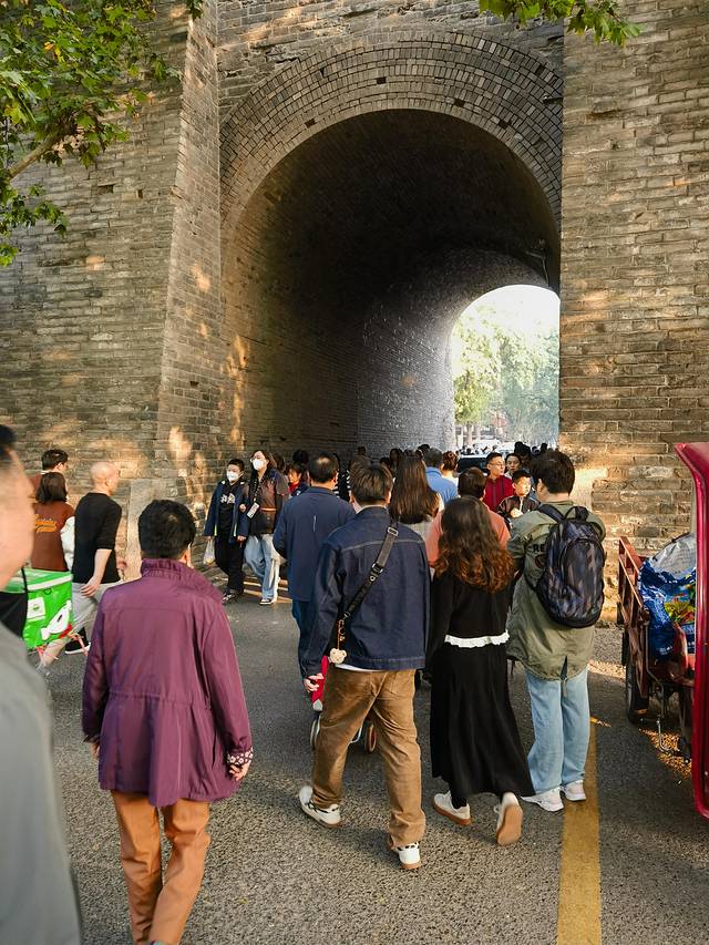 小知识:西安城墙并非全部都是唐朝留下的遗迹,基本都是明朝时期留下的,除了西南城郊含光门那一段是唐朝的。城墙高12米,顶宽12-14米,周长13.74千米,基本上看城墙有多高,上去就有多宽。