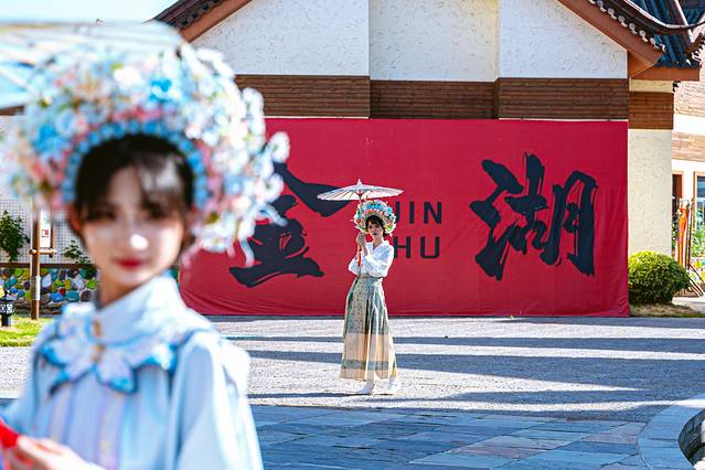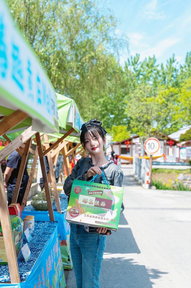 踏过小桥后,市集区的热闹繁华便映入眼帘,这里售卖着各式各样的金湖特产,琳琅满目,有鸡鸭鹅蛋、塔集挂面、豆浆、油炸小丸子、尧里黄庄藕粉等。