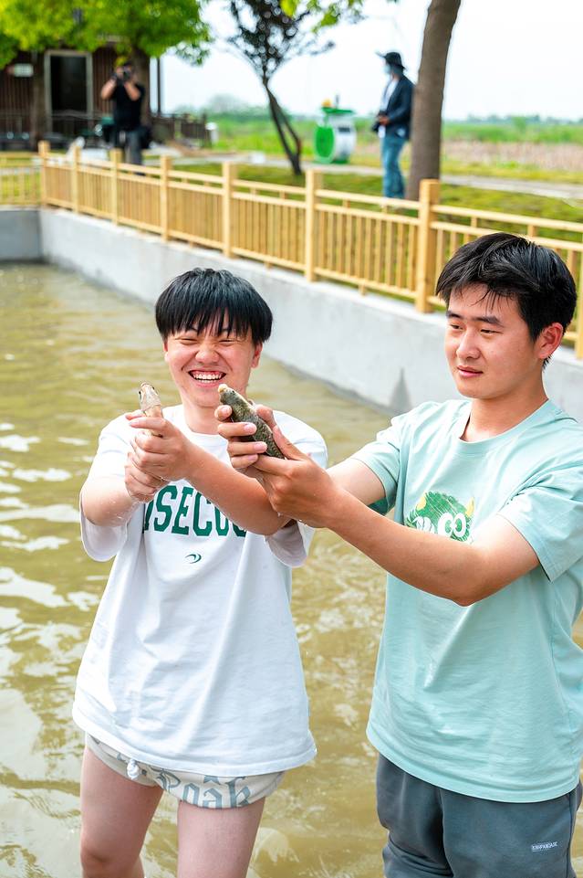 看到这景象,你是否也想起了自己的童年?没错,童年时的我也下河抓过鱼,摸过虾,没想到,在这里还可以体验摸鱼。摸鱼一定要把水搅浑,这样鱼儿在浑浊的水里就被呛晕了,毕竟是“浑水摸鱼”嘛。