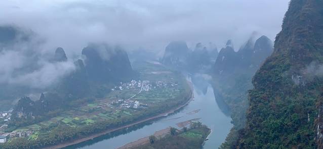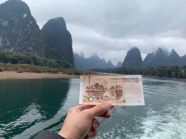 风景💃:会经过20元人民币的景点,九马画山,手指山…该看的景点都包含进去了,游竹筏坐的跟这风景差不多,选择一个就可以了。因为天气不大好,想着可能竹筏会停,所以就选择了游船,结果出乎意料的好,每个景点会有讲解,会提前广播,想要看的就可以出甲板等待就行。