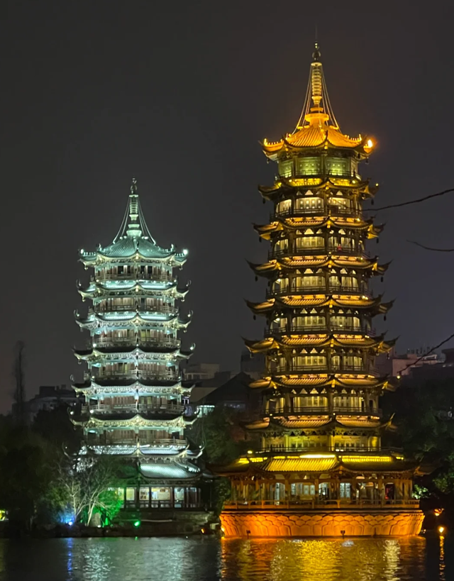 日月双塔和两江四湖主要是夜景好看,不用登塔,沿着湖边走走就好了。日月双塔确实很好看,双塔倒映在水里很美,选好机位很出片~但两江四湖的夜景一言难尽,只能用一个字形容,哎~
