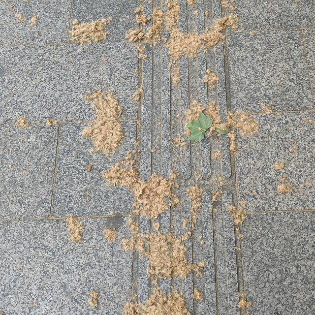 南京的法国梧桐相当多,果絮随风而散,到处堆积。