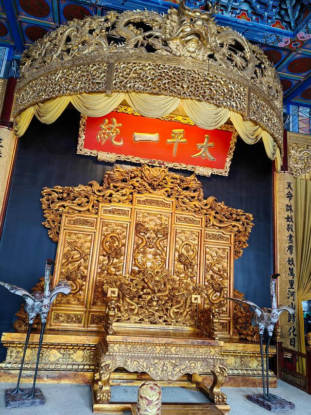 天王宝座。1853年洪秀全进入南京后,杨秀清等已将原清两江总督衙门安排作了天王府。南京定为太平天国的首都,改称天京,颁布《天朝田亩制度》。从此后11年里直到病死,洪秀全再也没有出过南京城。