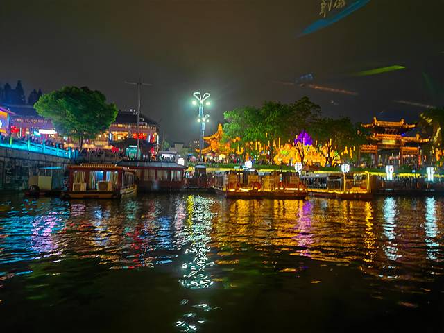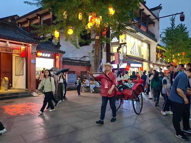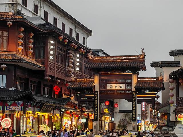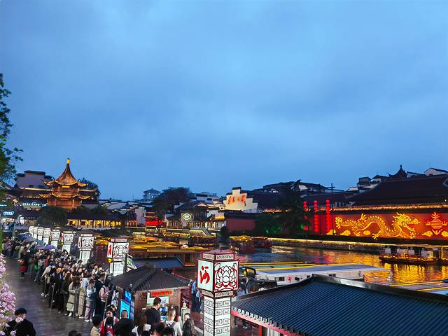 到了夫子庙秦淮风光带,华灯初上,人潮涌动。