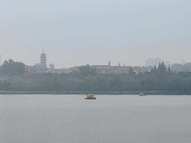 玄武湖紧邻着明城墙和南京火车站,面积大,坐游览车转了一圈。气温适宜,吹着小风,景色宜人。