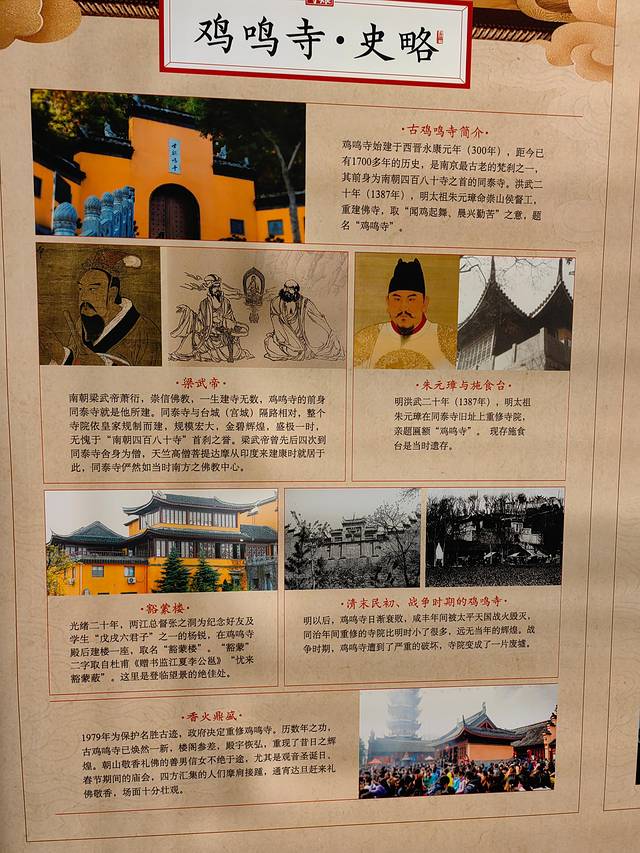 纸质票与电子票居然分两个入口进。康熙皇帝南巡时,曾登临寺院,并为这座古刹题书了“古鸡鸣寺”大字匾额。
