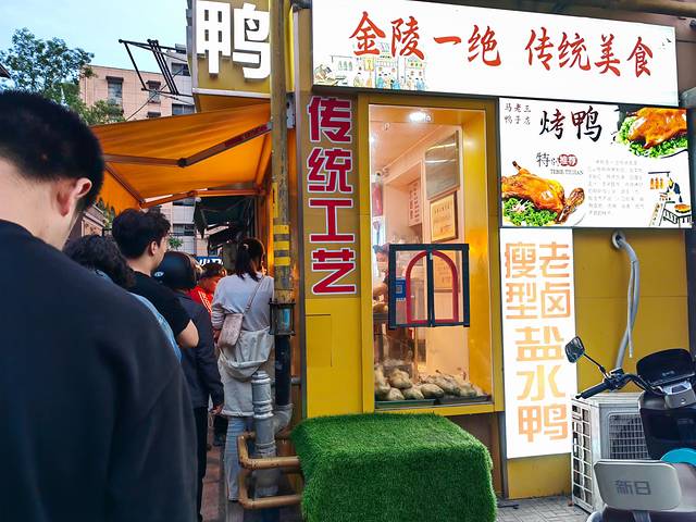 走入科巷旁边,遇见马老三鸭子店,排队。